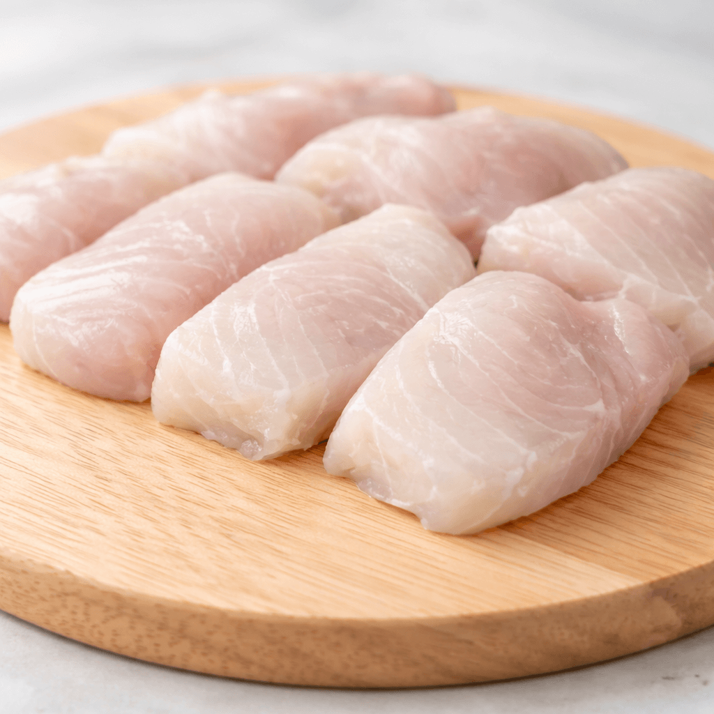 • Suprema sin piel: se separan los lomos, se quita la piel y se realiza un corte rectangular (pescado de 2 kg o más).